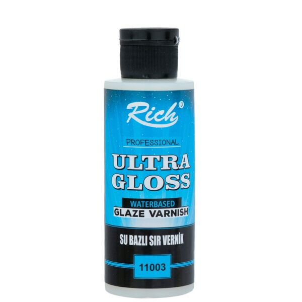 وارنیش ریچ یک محلول بر پایه آب است که یک محافظت بالا شبیه یک لایه فیلم را بر روی کار شما ایجاد میکند. این محلول بسیار براق بوده و برای سطوح کلیه کارهای هنری یک لایه محکم ، با دوام و تمیز و شفاف ایجاد می کند. برای استفاده بهتر است دو لایه از محلول استفاده شود .